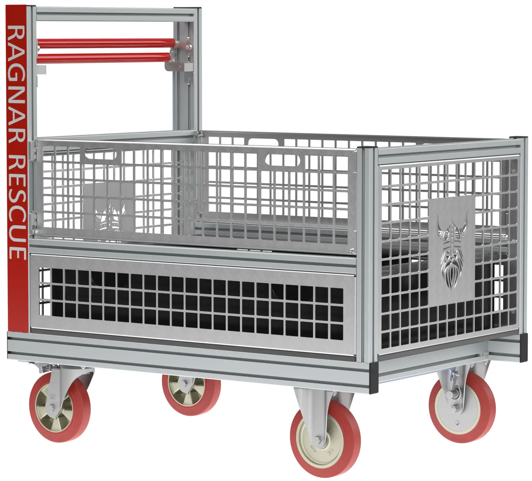- Alle unsere Rollcontainer sind entwickelt von Einsatzkräften, konform zur AGBF-Fachempfehlung, 800kg Tragfähigkeit, 200mm Blickle-Rollen, Totmann-Trommelbremsen mit Hebelmechanik, einhändig bedienbar, hochfeste Aluminiumprofile, Maschinenbau-Qualität, professionelle CAD-Zeichnungen